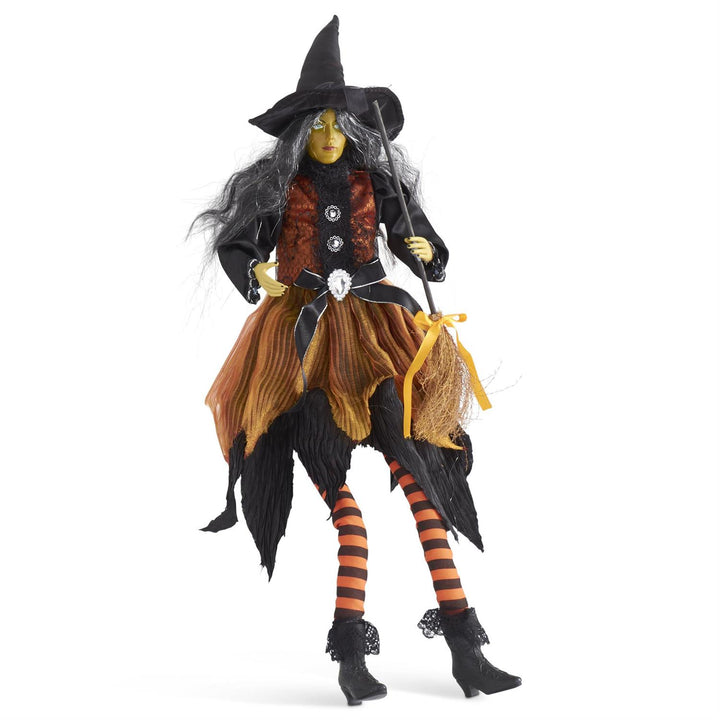 28 Inch Sitting Sybil Witch with Broom & Orange Dress