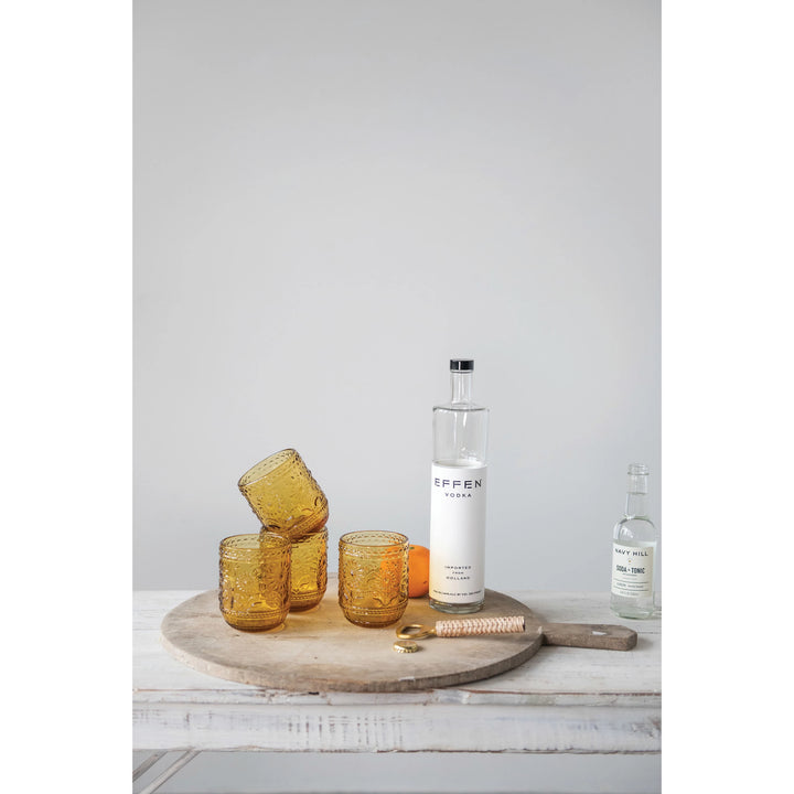 Embossed Drinking Glass- Amber Color