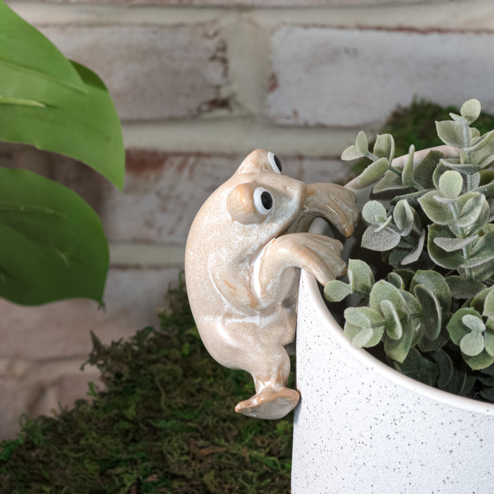 Beige Ceramic Frog Pot Hanger