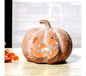 9 Inch Terracotta Jack-O-Lantern Pumpkin
