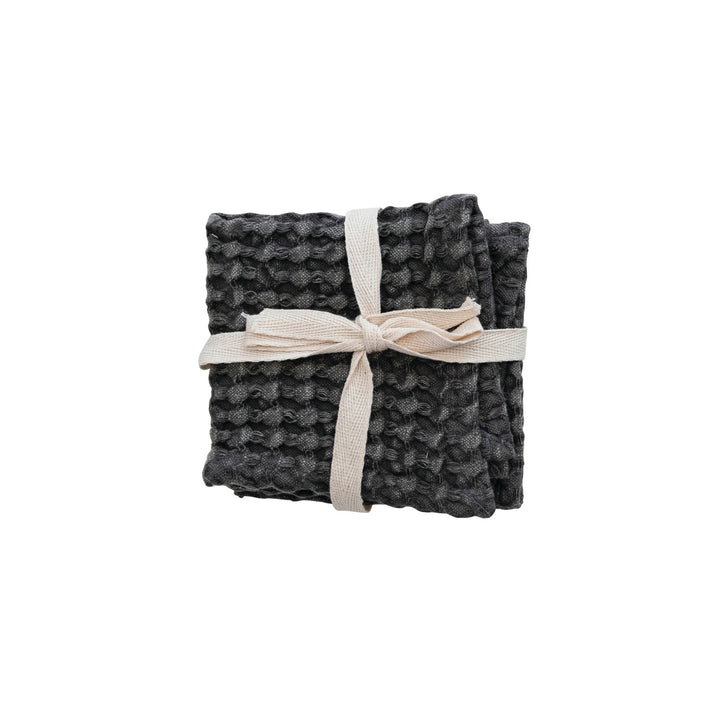 Stonewashed Charcoal Cotton Waffle Weave Dish Cloths