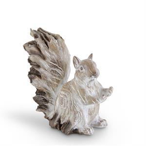 9.5 Inch Whitewashed Resin Sitting Squirrel
