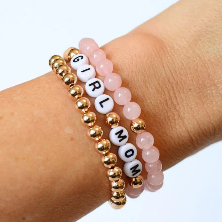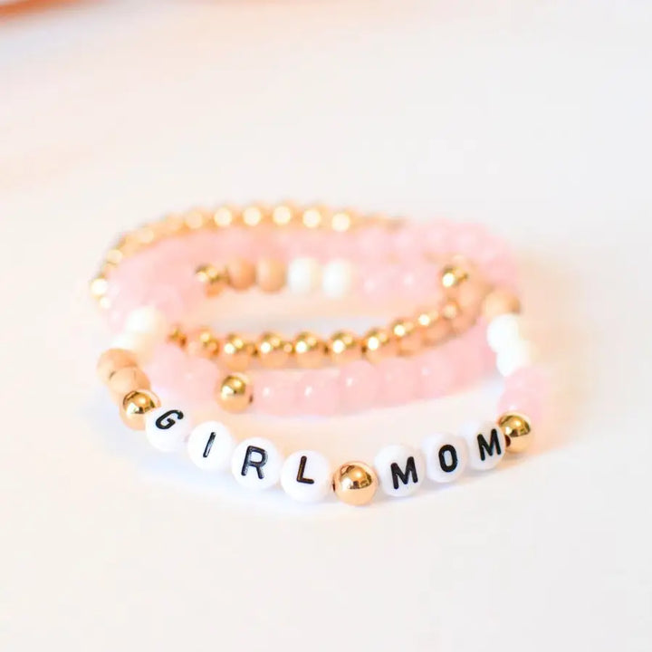 Girl Mom Pink Gold Bracelet Jewelry Set