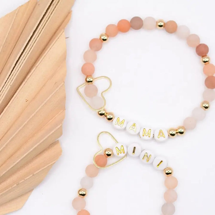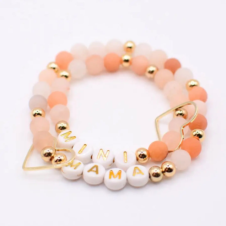 Mama Mini Matching Cream Stone Beaded Bracelet Jewelry Set