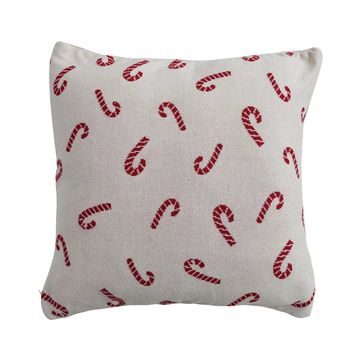 20" Square Cotton Knit Pillow with Candy Cane Pattern
