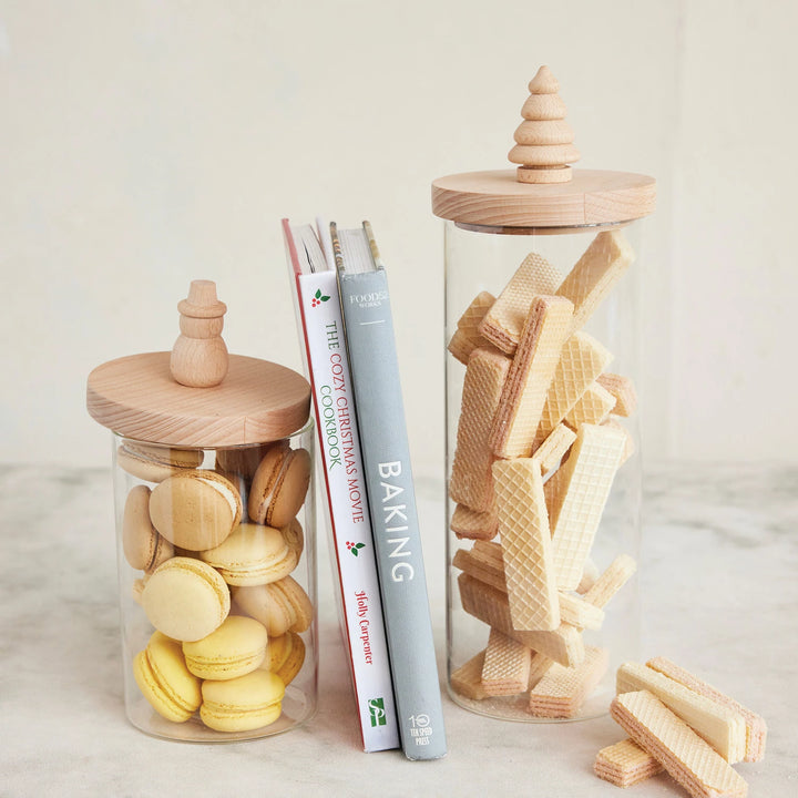 Glass Canister with Wood Lid & Christmas Tree Knob