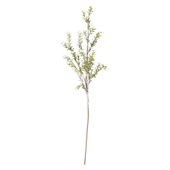 30 Inch Glittered Snowy White Berry Leaf Stem